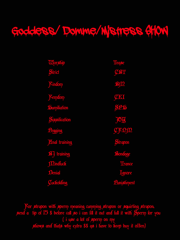 Ich bin nicht herrisch. Ich mache einfach Vorschläge ohne Optionen! Latex, Gummi, PVC, Wetlook, High Heels, Stiefel übers Knie, Spielzeuge, Dildo, Butt Plug, Strapon, Kontrollspielzeug, Lovense, Gefühl der Verbindung, Cumming-Spielzeug, Spermaspielzeug, Strapon, Squirting-Spielzeug, Ejakulationsspielzeug, Squirting-Ejakulation-Strapon, Worship Tease, Strict CBT Findom, BM Femdom, CEI Humiliation Ignore, Analtraining, BJ-Training, SPH, Mindfuck, Trance Denial Pegging, Punishment, Cuckolding, CreamPie, Sissification, Bondage, CFNM JOY, Dommina, Herrin, Göttin, Tabu, Animalprint-Kleider, Heels, Öl, durchsichtige Regenkleider, Spucke, Jeanskleider, Heels, Rollenspiel, Geschirr, Maske, Peitsche, Handschellen, Fell, Spikes, Kleider und Heels, versaut, Teufelshandschuhe, Hut, Catsuit, Leder, Schulbüro, Polizeimädchen, Krankenschwester, Schneewittchen, Fußballlehrerin, Stiefmutter, Stiefschwester, Tante, MILF, Cousine, Ehefrau, Freundin, Ketten, große Brüste, Titten, Brüste, Arsch Po- und Brustwarzenbezüge, Heavy-Metal-Rock, Sonnenbrille, Metal-Heels, rotes PVC, Nylonstrümpfe Strumpfhosen