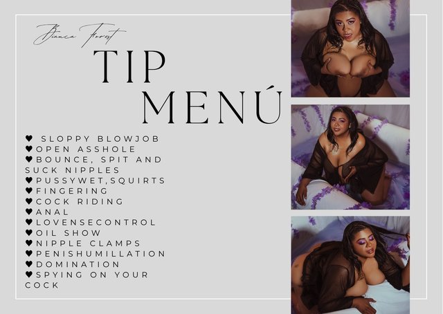 Ver más modelos de las etiquetas de BiancaForest: anal / deepthroat / bigtits / curvy / femdom / BBW / squirt / bigass / masturbation / Ebony / smile / strapon / hugeboobs / humilliation / hardcore / plussize / speak / showfeet / armpitshow / milkpussy / fastresponse