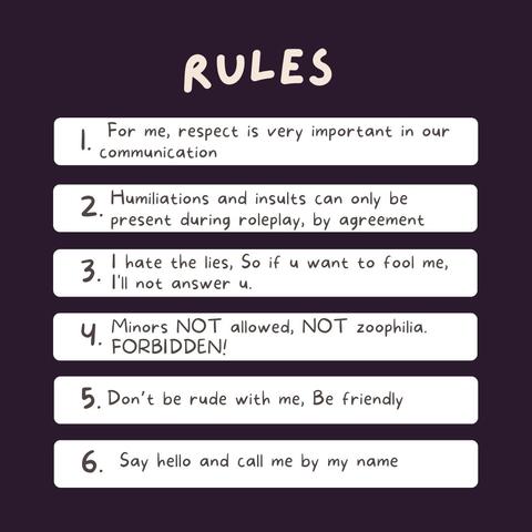 ⚠️ Humiliations and insults can only be present during roleplay, by agreement