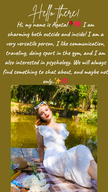 Bună bună! Numele meu este Agata, un nume foarte frumos, nu-i așa? Sunt o doamnă foarte dulce și romantică. Apropo, fac sport și merg la sală tot timpul!