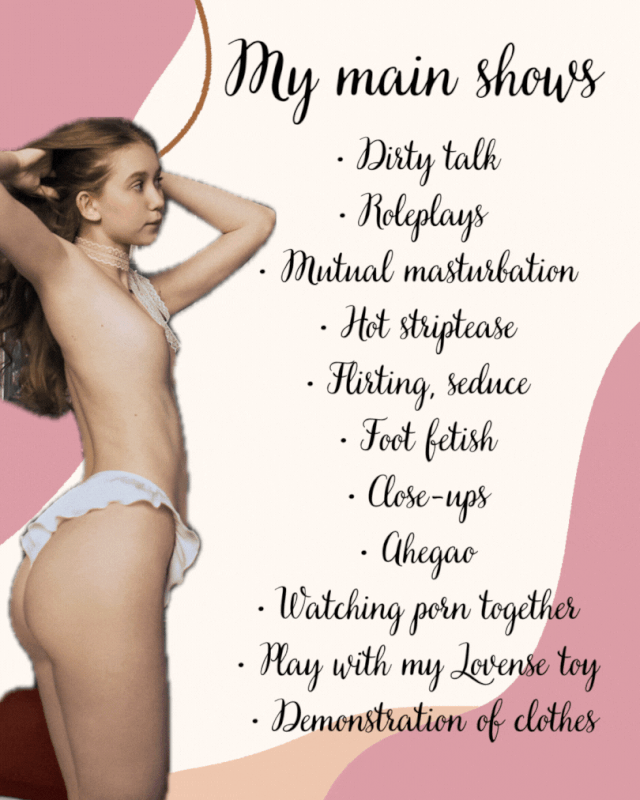 • Ofrezco un espectáculo de vestuario único. Tengo una variedad de disfraces, además de tacones, lencería, trajes de baño, vestidos, blusas, faldas y más. Para los amantes de la moda adolescente, tengo looks especiales para adolescentes y uniformes escolares.