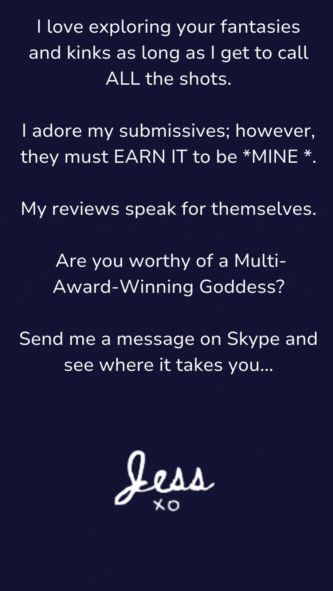 Where do I even begin. Jessica is amazing. Absolutely gorgeous and naughty as hell. I had a duo-Domme session with her and JennaCyde, and oh lordy, it was a highlight of my life. I’ll be back again soon, they’re both too irresistible to avoid. Thanks again Mistress!
