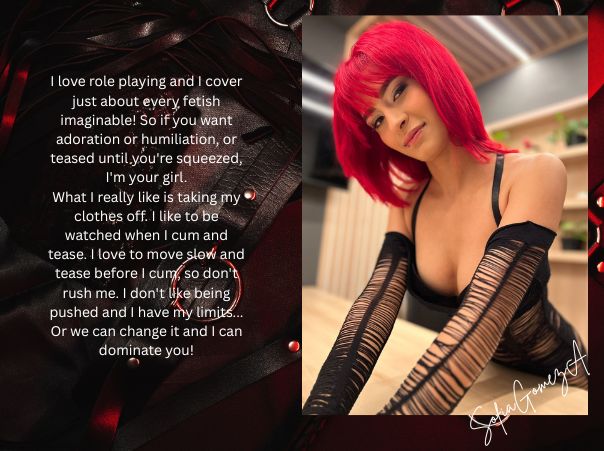 Hello, I am Sofia the girl you are wanting and dreaming. With me you will find the true meaning of what pleasure and lust are.