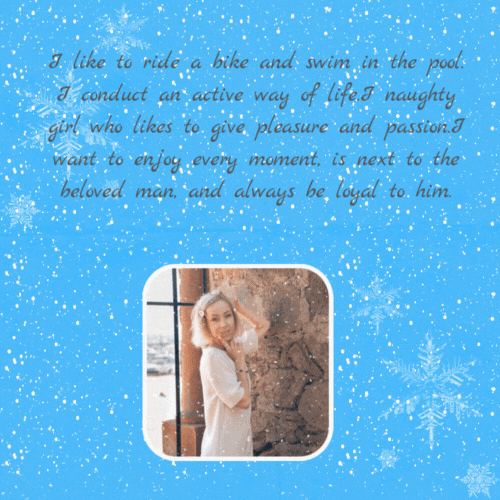 I like to ride a bike and swim in the pool. I conduct an active way of life.I naughty girl who likes to give pleasure and passion.I want to enjoy every moment, is next to the beloved man, and always be loyal to him.